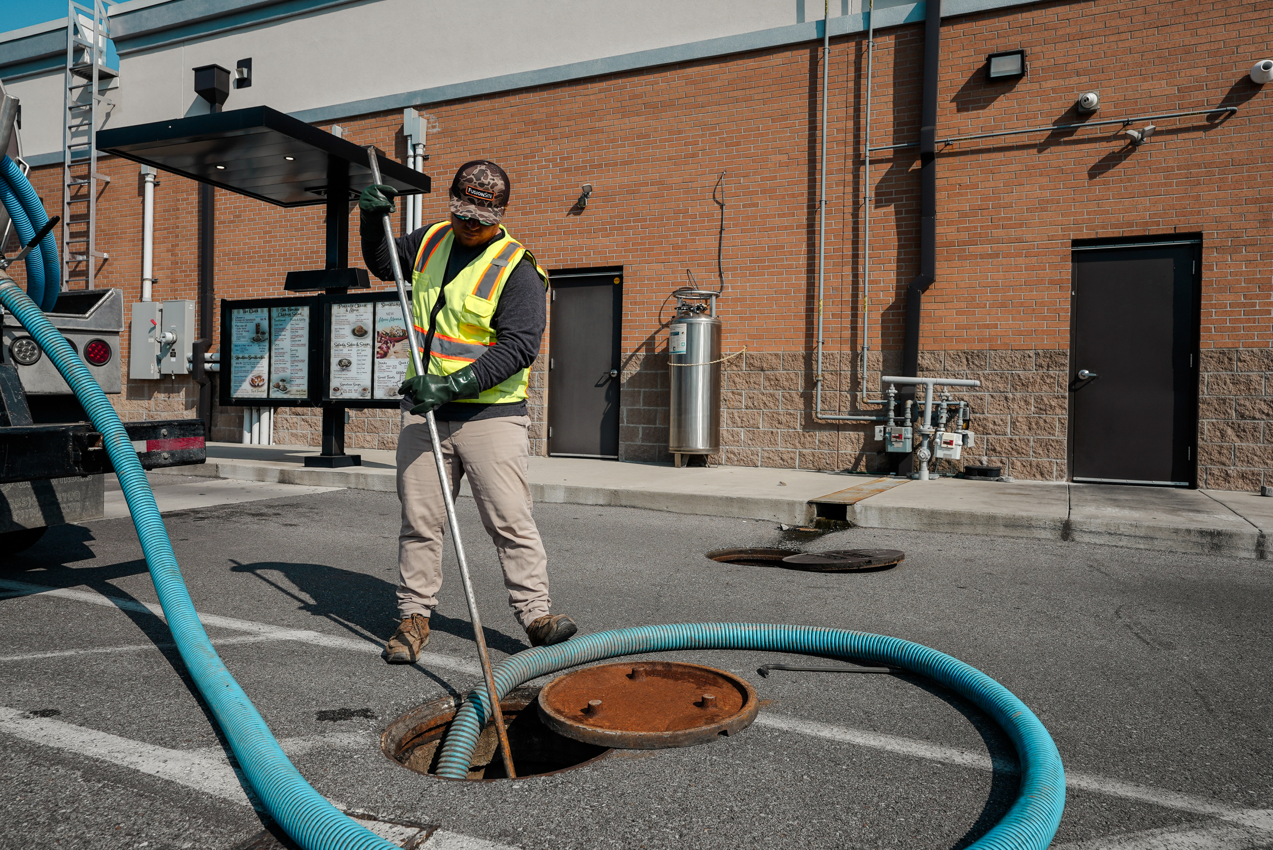 Large-capacity vacuum trucks for exterior grease interceptors at restaurants, hotels, and commercial kitchens