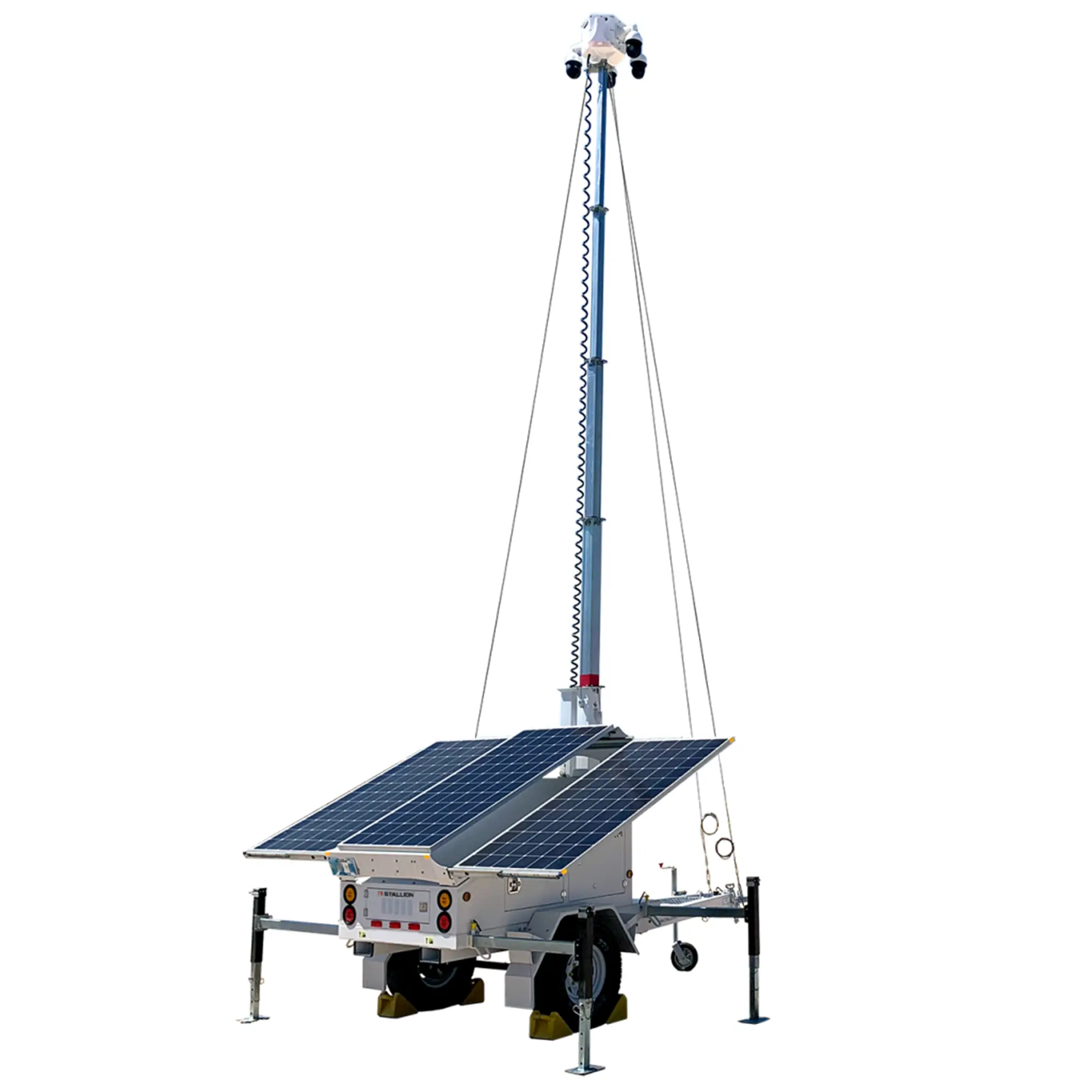 - 6 × 150 Ah battery/solar-powered options, motion-detection LED lights, and 2 PTZ cameras